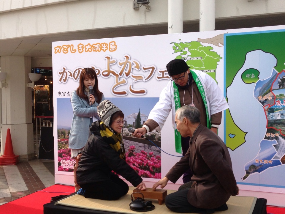 鹿児島の宴席での伝統遊び「なんこ」を来場の皆様に紹介しました。