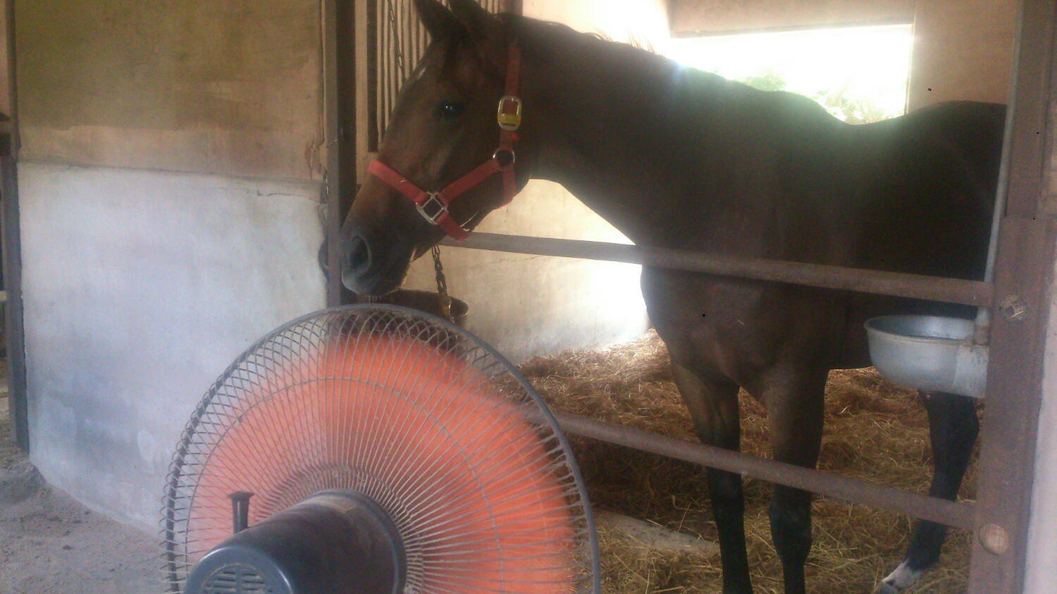 馬も暑いので扇風機から離れません(--;)